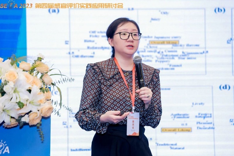 江南大學 副研究員 夏熠珣老師,帶來《以多維感官視角解讀消費者食物選擇》的精彩分享。夏老師從專業感官的角度解讀消費者對食物的感知和選擇喜好,報告中提到的鑒定消費喜好驅動因素以及關于食物的感官品質對消費者喜好之外的情緒及其他認知的方法,希望能夠給大家在做消費者喜好度研究時提供一些思路。