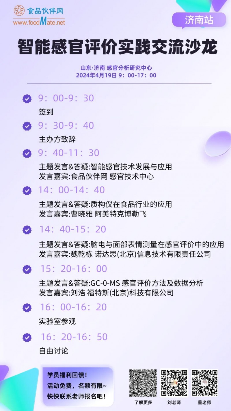 歡迎食品、原料、農(nóng)產(chǎn)品、預(yù)制菜、日化、醫(yī)藥等行業(yè)的感官評測人員、品管品控人員、新產(chǎn)品開發(fā)人員,高校、科研院所等從事感官分析的研發(fā)技術(shù)人員,智能儀器機械設(shè)備廠家等相關(guān)人員報名參與。