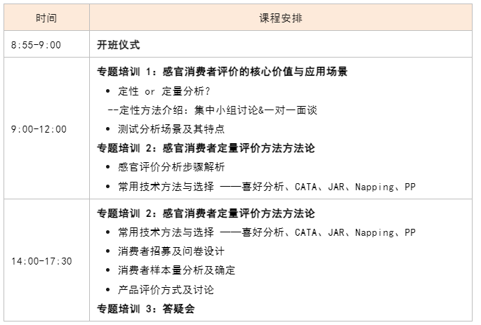 適用對象:有一定基礎的感官分析師、消費者研究人員、企業研發人員、第三方檢測人員、高校老師、市場及公司管理者等