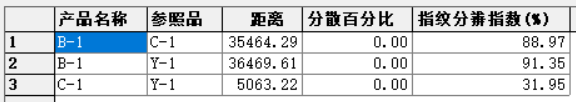 表1 樣品間的指紋分辨率