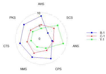 由圖5可知,3個不同品牌的青稞罐頭樣品在酸味、咸味、咸味上的排序是一樣的,從小到達分別是Y-1、C-1、B-1。