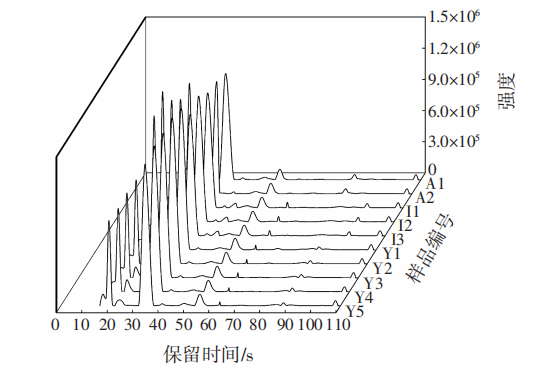 電子鼻基本參數設定:進樣量5000μL、注射速度125μL/s、進樣口溫度200℃、進樣口壓力10kPa、捕集溫度40℃、采集時間110s、閥溫度250℃、檢測器溫度260℃、振蕩器攪拌速度500r/min。