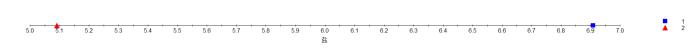 圖4 樣品的滋味分布圖(注:1為常溫奶;2為鮮牛奶)