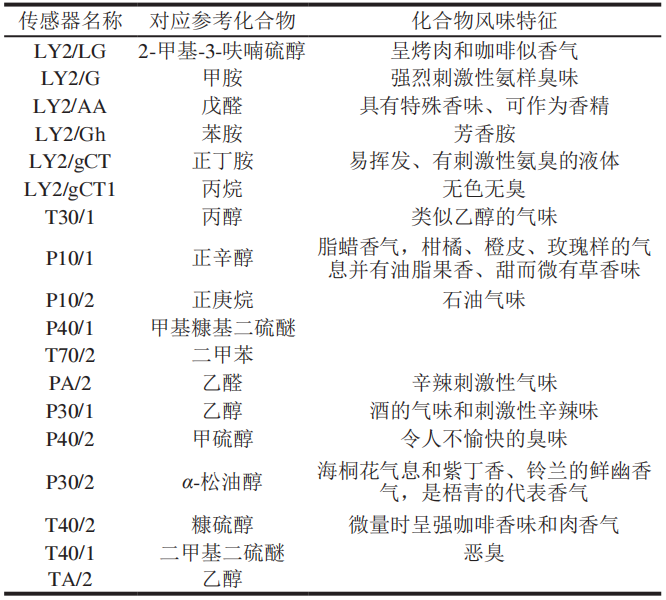 表2 不同傳感器對應的參考化合物