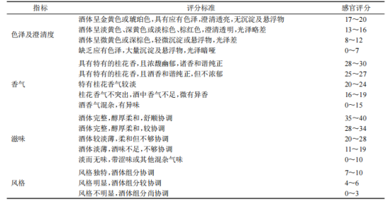 表1 不同桂花酒感官評分標(biāo)準(zhǔn)