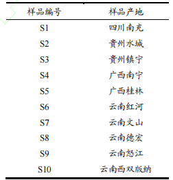 10種不同產地草果干燥成熟果實,草果樣品具體信息見表1。
